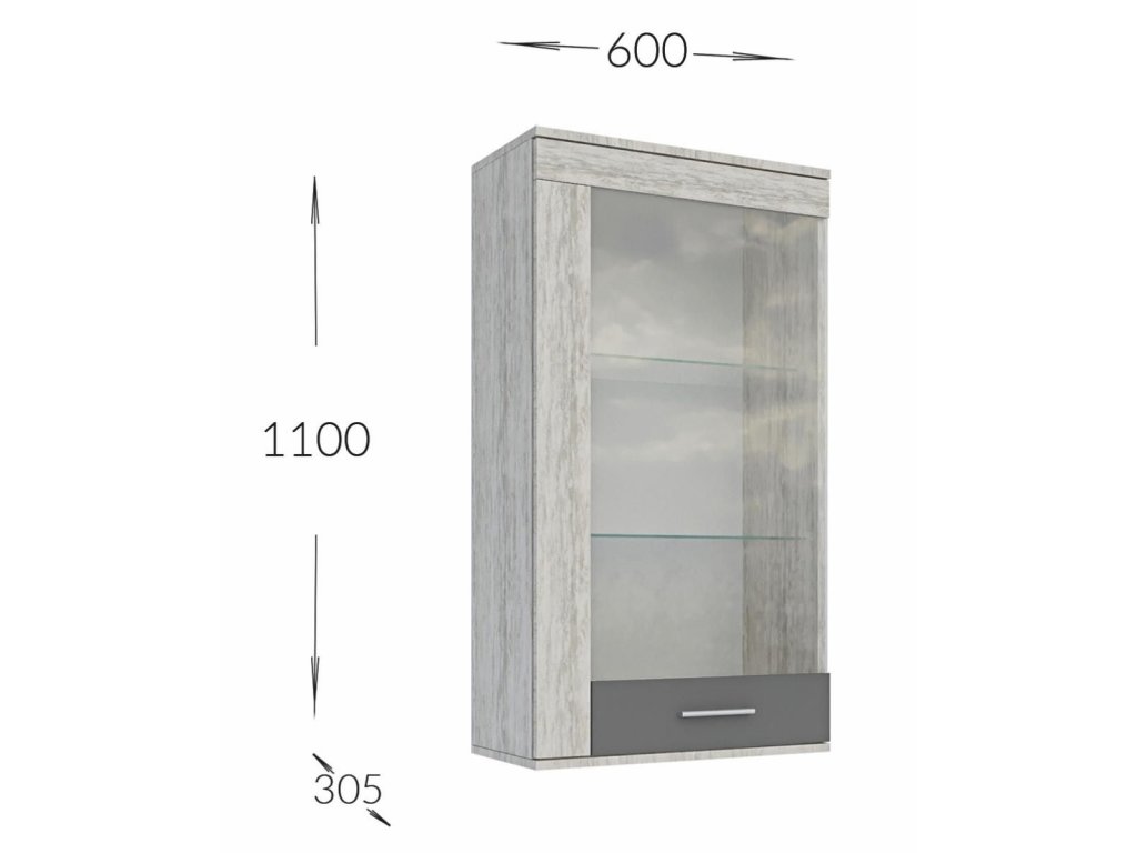 - vitrína (š/v/h): 60 x 109 x 30,5 cm,