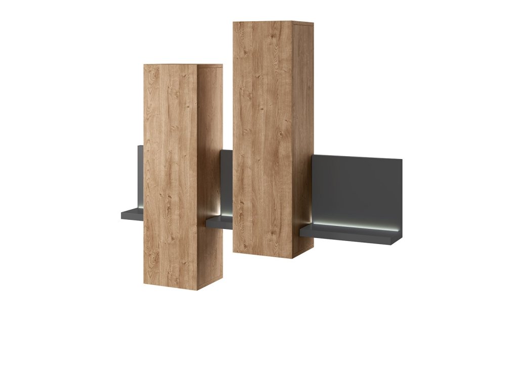 Vitrína s poličkou BILSBY patří ke komponentám obývacího sektoru BILSBY, ze kterých si vyskládáte designovou a funkční obývací stěnu. Je vyrobena z LTD desky s ABS hranami. Vitrína je v jednoduchém provedení, v barvě antracit, dub ribbec. Je dvoudveřová a v každé části se nacházejí tři poličky. Také disponuje praktickou policí pro uložení různých dekorací. BILSBY je kolekce obývacího nábytku, která potěší všechny uživatele svým elegantním a zároveň jednoduchým vzhledem. Je vhodná do moderních obývacích prostor menších i větších rozměrů. Charakteristickým rysem kolekce BILSBY je asymetrický tvar, který má nejen funkční funkci, ale je také dekorací vašeho interiéru. Dodáváme v demontovaném stavu.Doplňkové parametry
