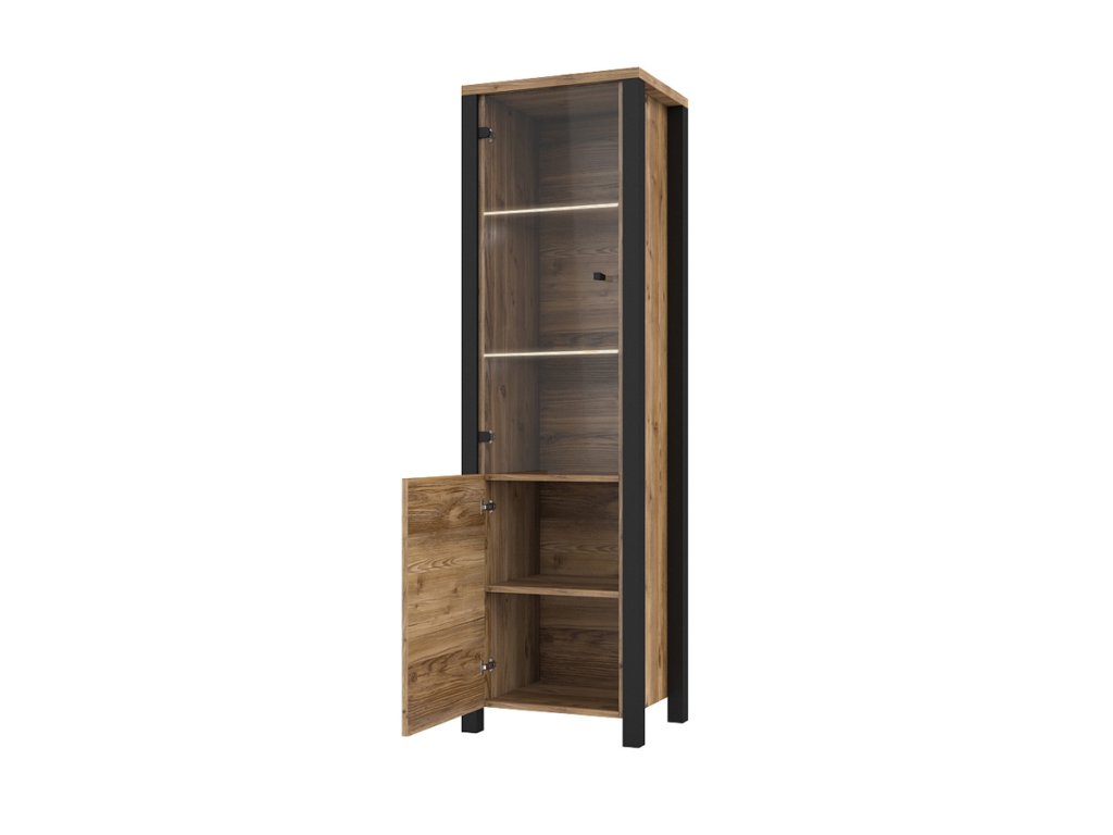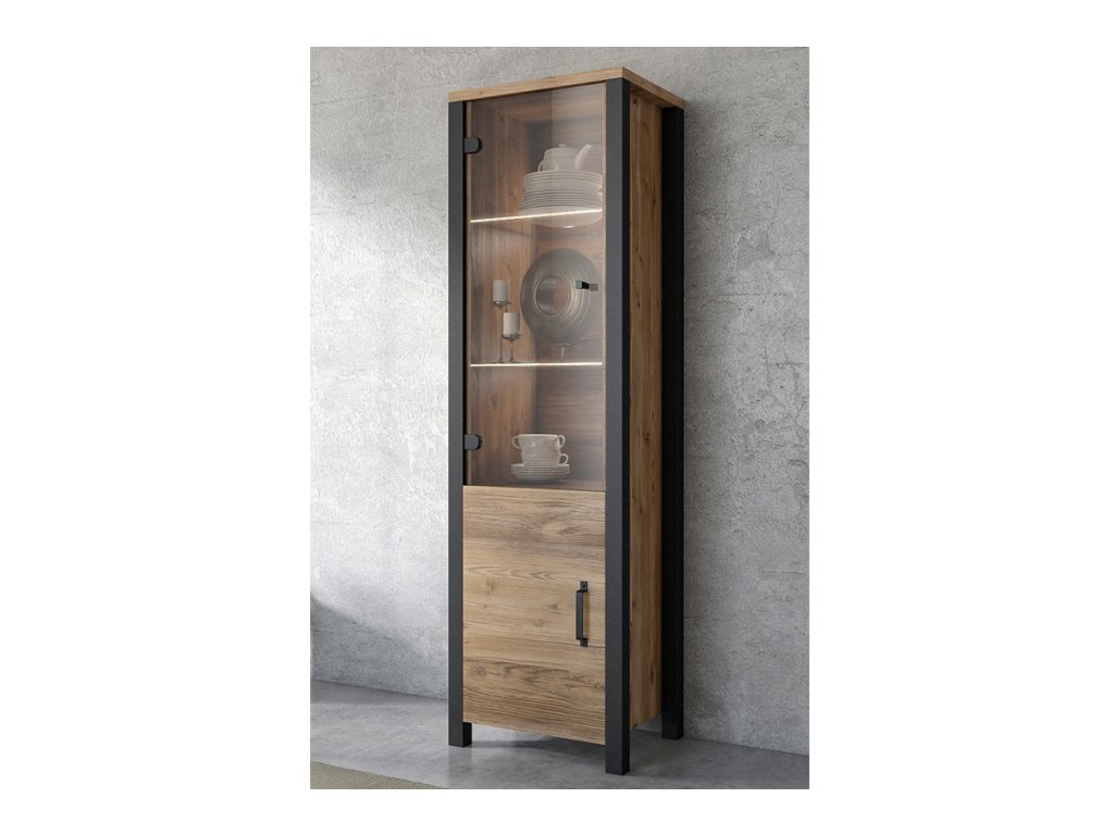 Vitrínu nabízíme v zajímavém barevném provedení smrk appenzeller/černý mat . Má elegantní úchytky černé barvy.