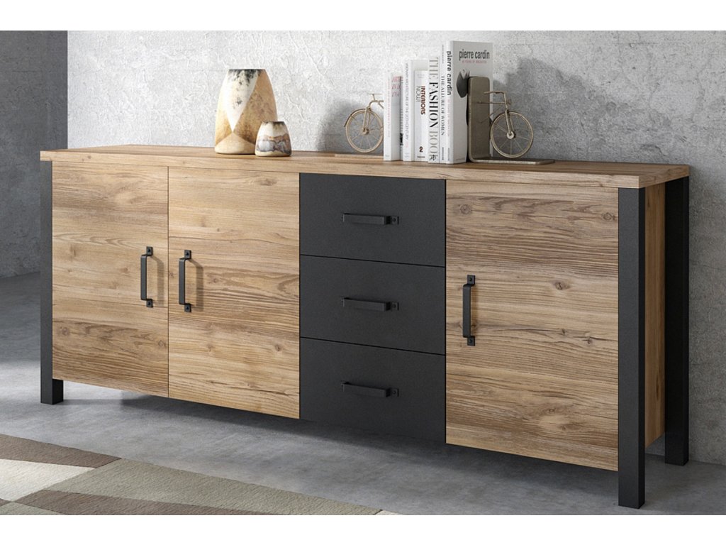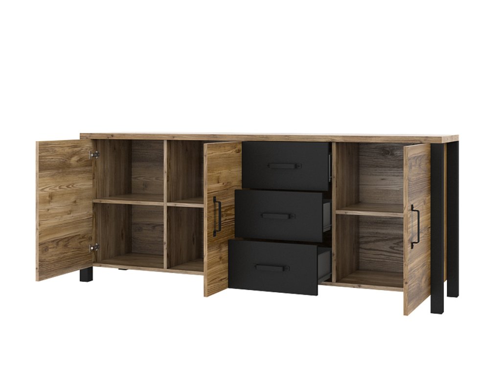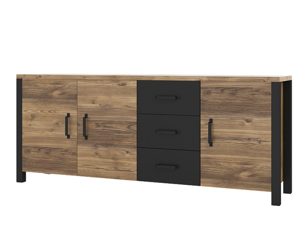 Komodu nabízíme v zajímavém barevném provedení smrk appenzeller/černý mat. Má elegantní úchytky černé barvy.