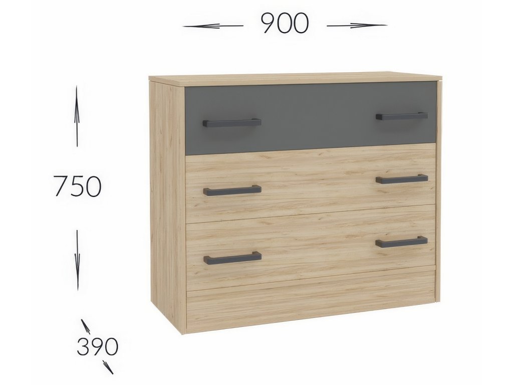 - Komodu se zásuvkami - (š/v/h) 90/75/39 cm