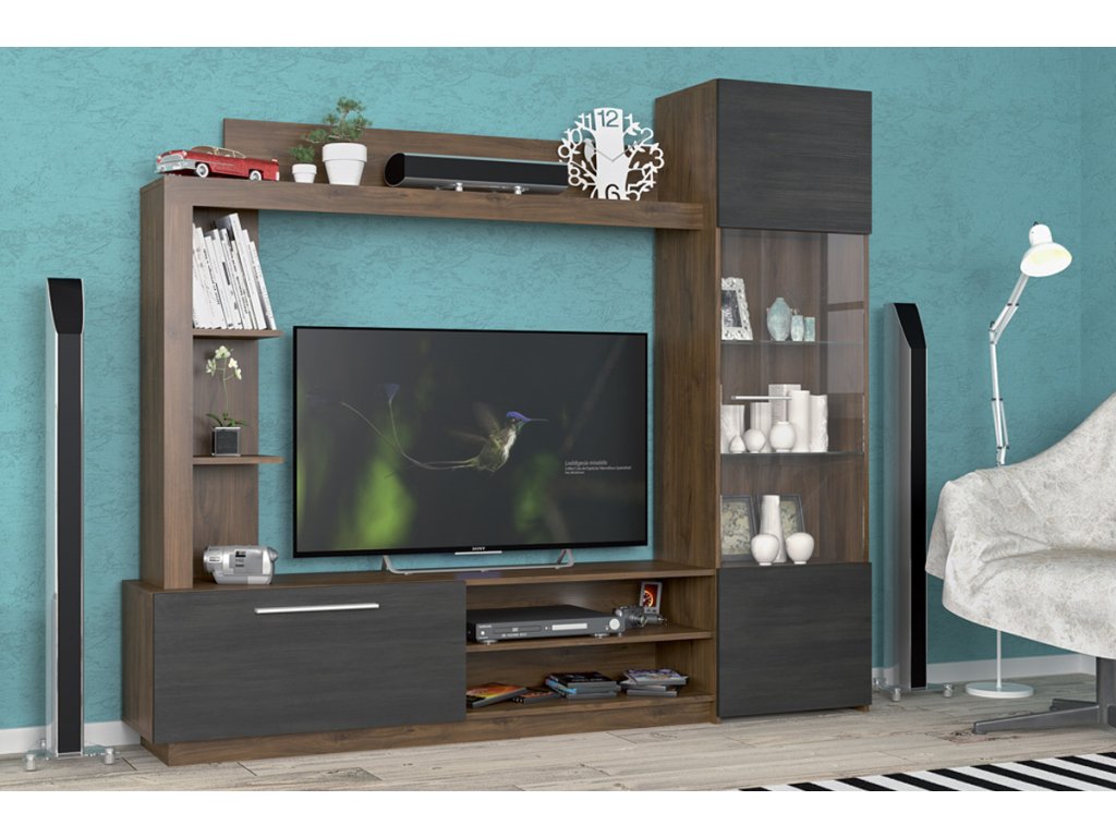 Obývací stěna se skládá z těchto částí: - vitrína, - regál, - závěsná police, - televizní stolek.