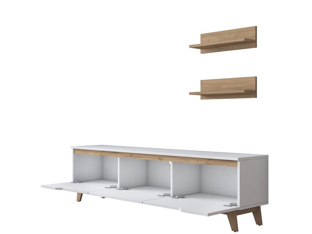 | Sestava obsahuje: | TV stolek 180x35x48,6cm, 2x nástěnná police 60x15x15cm |