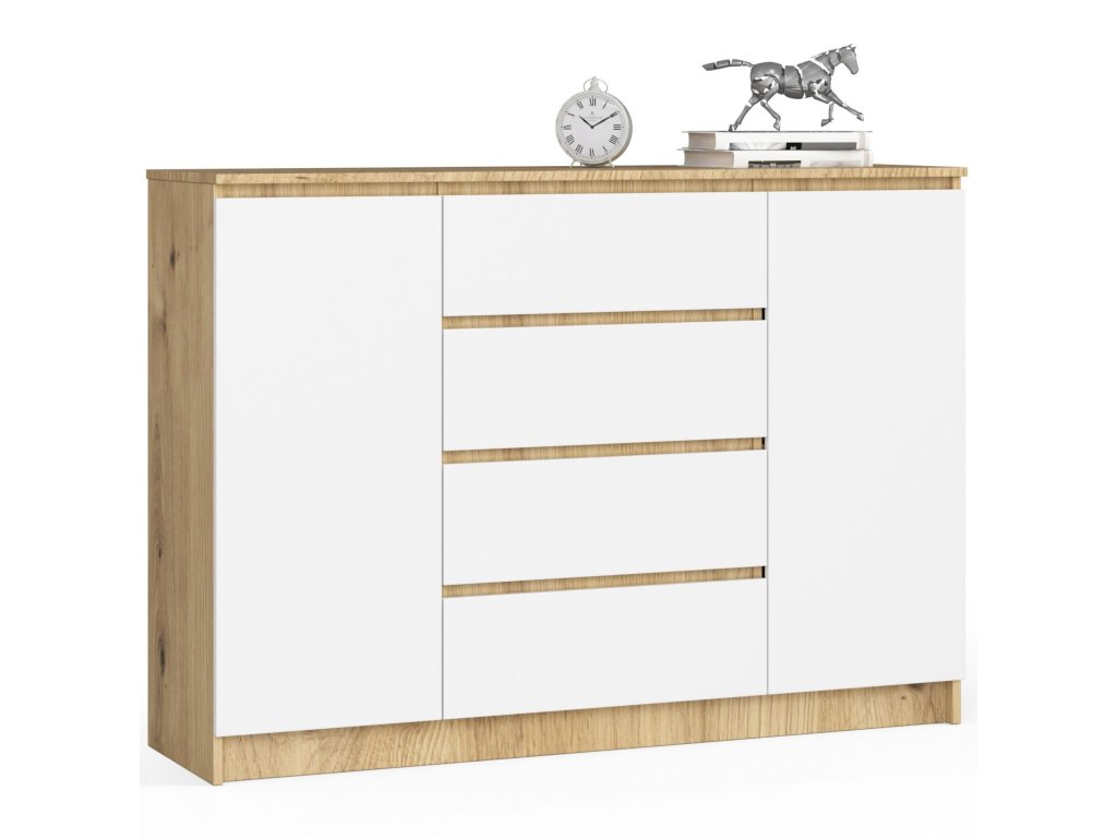Pokud hledáte dokonalou kombinaci kvality, designu a funkčnosti, komoda LEA140 je tou pravou volbou pro vás. Tento nábytek v sobě spojuje přírodní krásu dubu artisan s čistým a elegantním vzhledem bílé barvy, což ho činí ideálním doplňkem pro vaši ložnici či obývací pokoj.