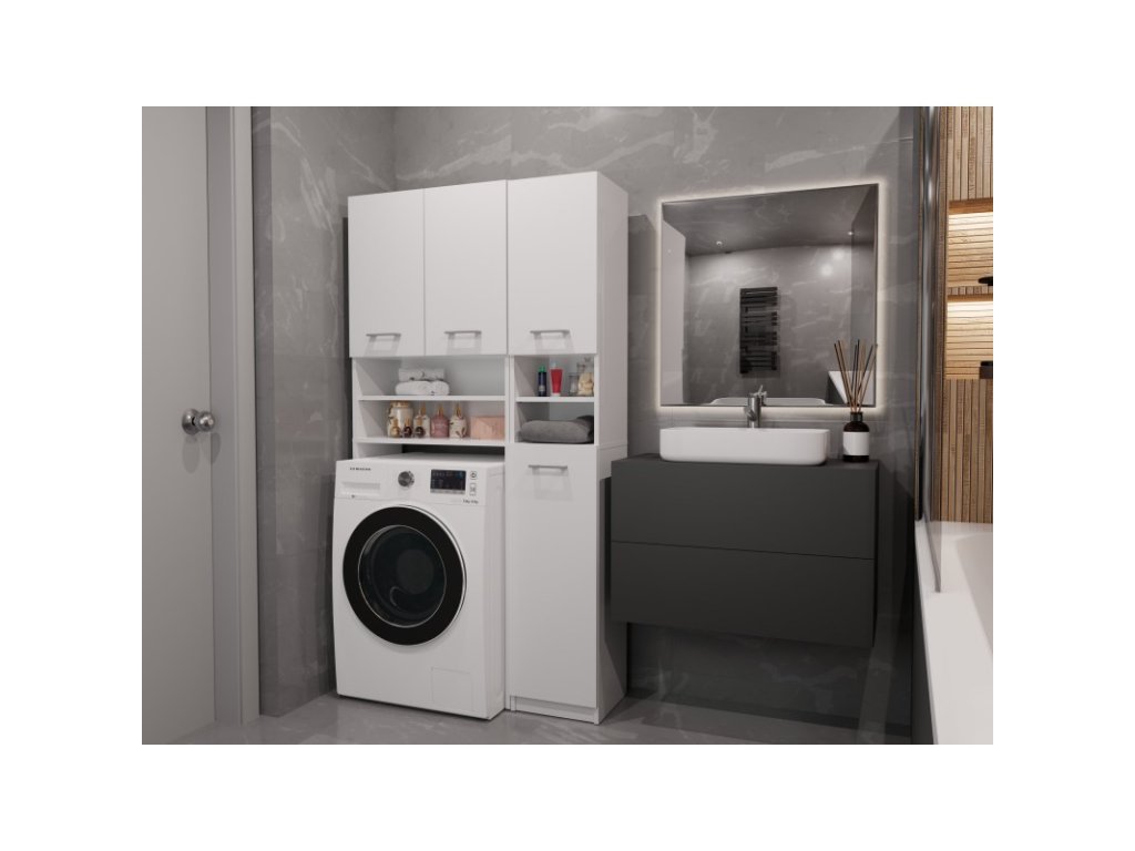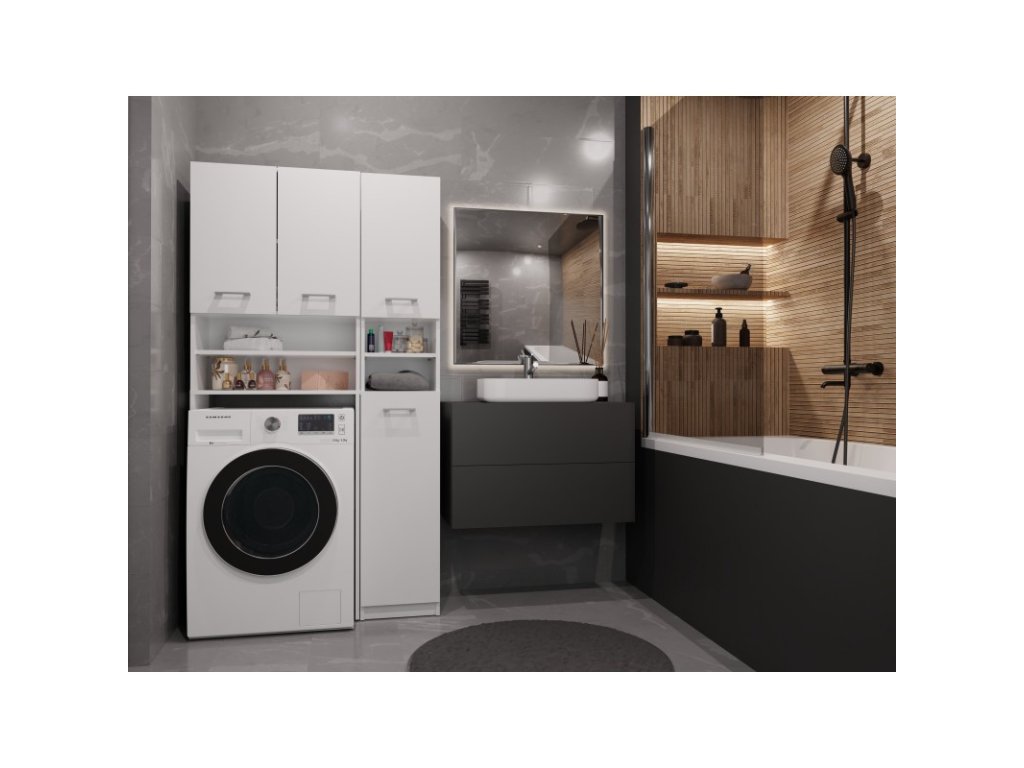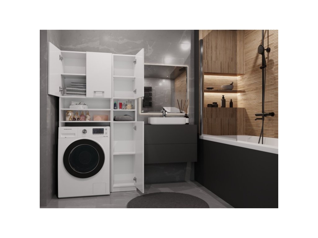 - Sestava obsahuje: Skříňku nad pračku a jednu vysokou skříňku