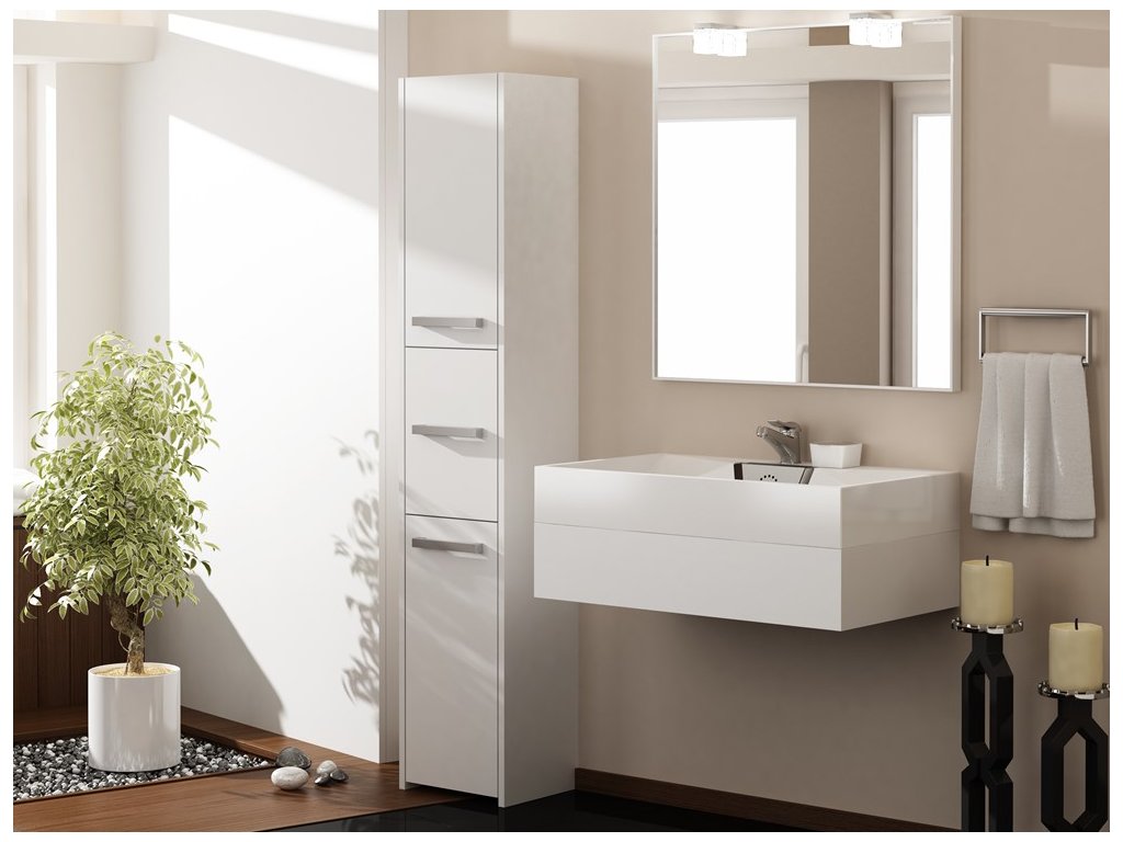 ANA33: Vysoká Bílá Koupelnová Skříňka pro Moderní Koupelnu