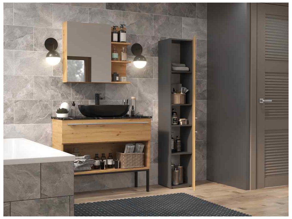 Vysoká koupelnová skříňka NEL II, antracit / dub Artisan
