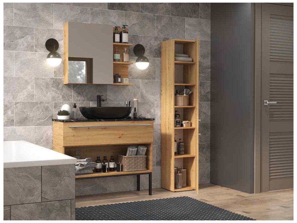 S rozměrem 174 x 31 x 30 cm a vybavením dvěma dveřmi a čtyřmi policemi, tato skříňka poskytuje dostatek místa pro uskladnění všech vašich koupelnových potřeb. Její vysoký design je navržen tak, aby maximálně využil dostupný prostor, zatímco barva dubu Artisan dodává prostoru příjemnou a uklidňující atmosféru.