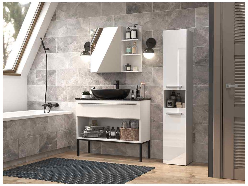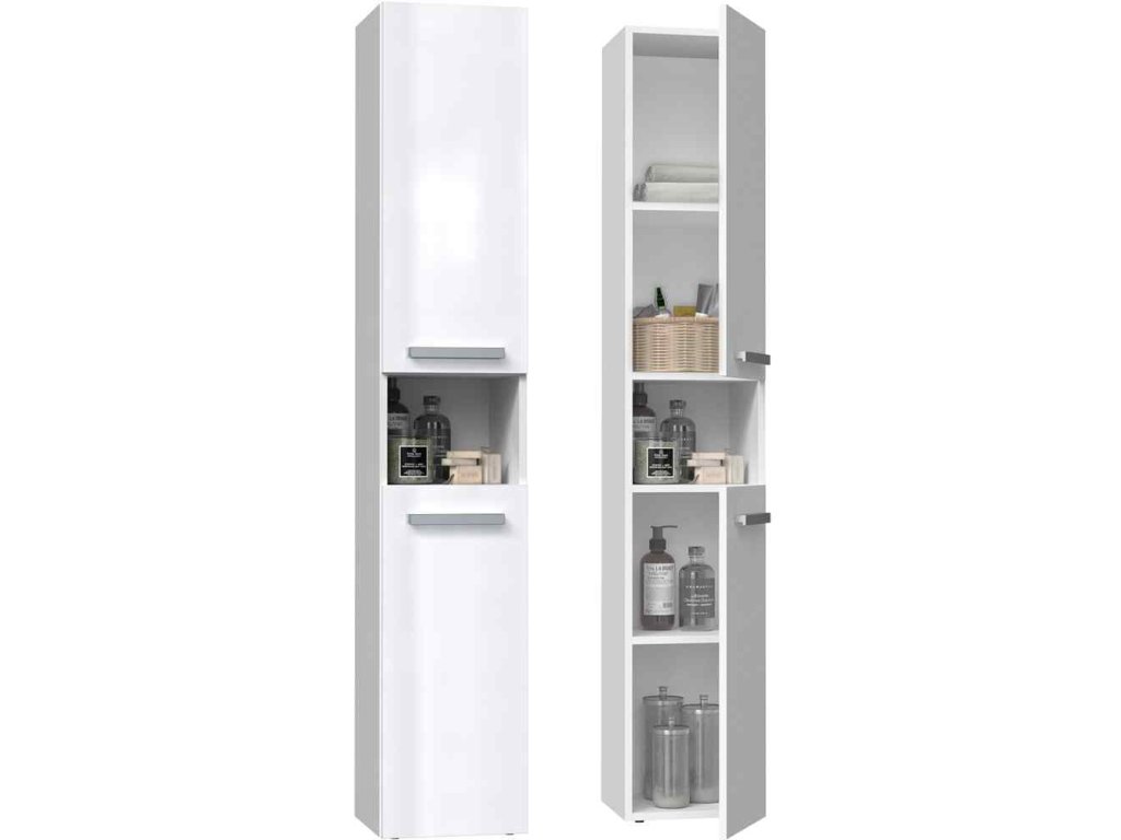 Vysoká koupelnová skříňka NEL I, bílý lesk