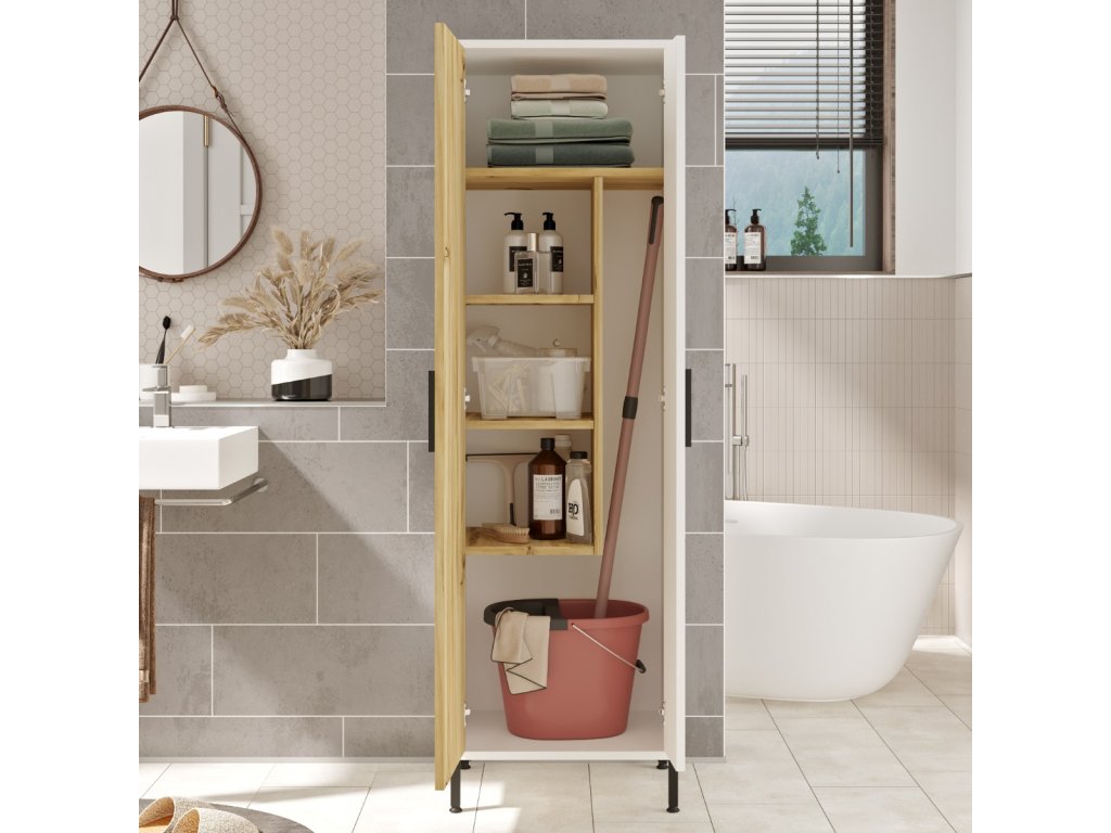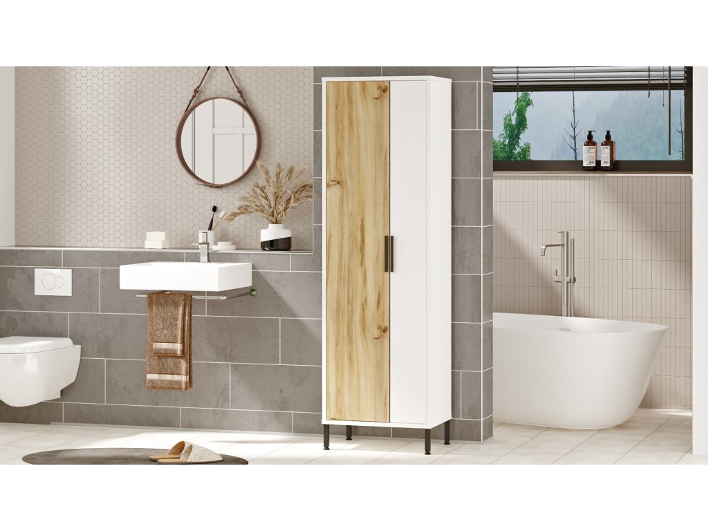 Vysoká policová skříň DYLAN 1, dub Left / bílá
