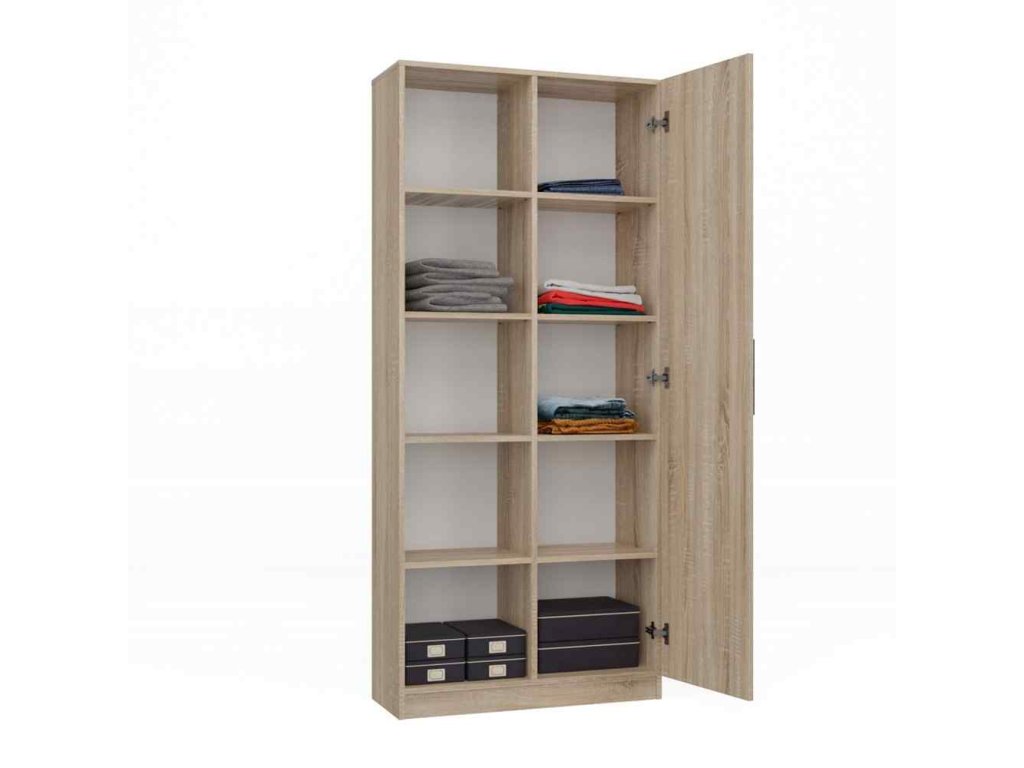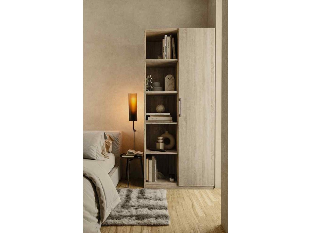 Teplý a přírodní vzhled dubu Sonoma dodává skříni unikátní charakter, který se snadno začlení do různých stylů interiéru. Její vysoká a štíhlá konstrukce je nejen praktická, ale také esteticky přitažlivá.