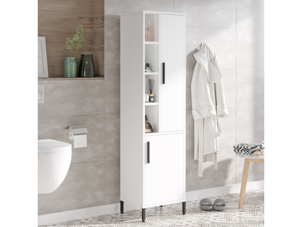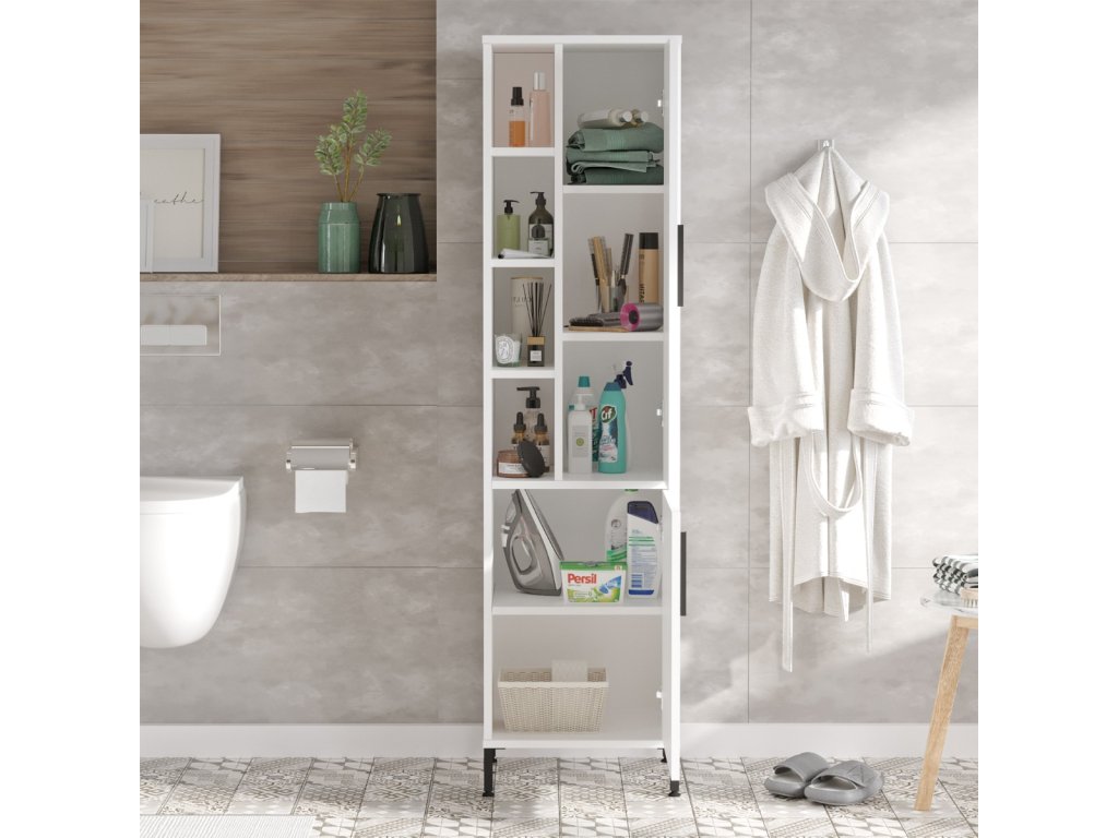 Představujeme VILLY 2 - vysokou policovou skříň, navrženou speciálně pro moderní koupelnu. Vytvořená z kombinace kvalitního LTD a pevného kovu, tato skříň v čistém bílé barvě přidá vašemu prostoru vzdušnost a svěžest.