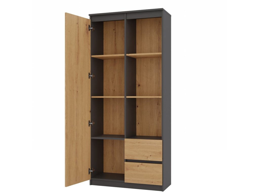 Elegantní kombinace antracitové barvy a odstínu dubu Artisan dodává skříni moderní a sofistikovaný vzhled, který snadno zapadne do různých interiérových stylů.
