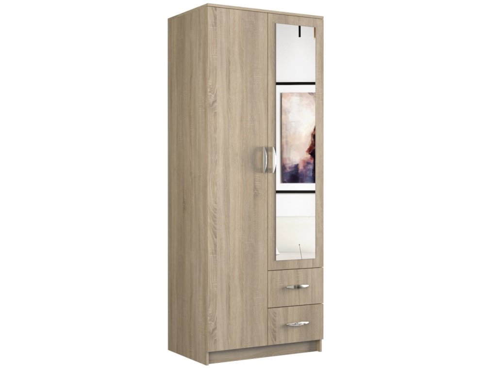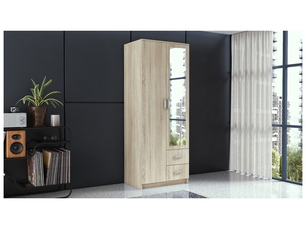 Vyrobená z kvalitního LTD materiálu, RENO 80 je designována pro dlouhodobou odolnost a snadnou údržbu. S rozměry 205 x 80 x 52 cm, tato skříň obsahuje zrcadlo, 2 zásuvky a 1 šatní tyč, což usnadňuje organizaci vašeho oblečení a doplňků.