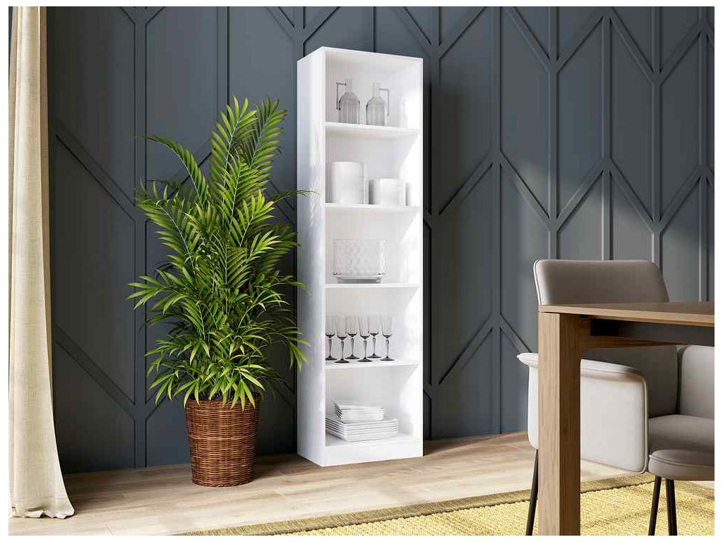 Čistý a svěží bílý odstín regálu AKRON50 dodává interiéru moderní a vzdušný vzhled. Jeho vysoký a štíhlý design je nejen praktický, ale také esteticky přitažlivý a snadno se začlení do jakéhokoli dekoračního stylu.