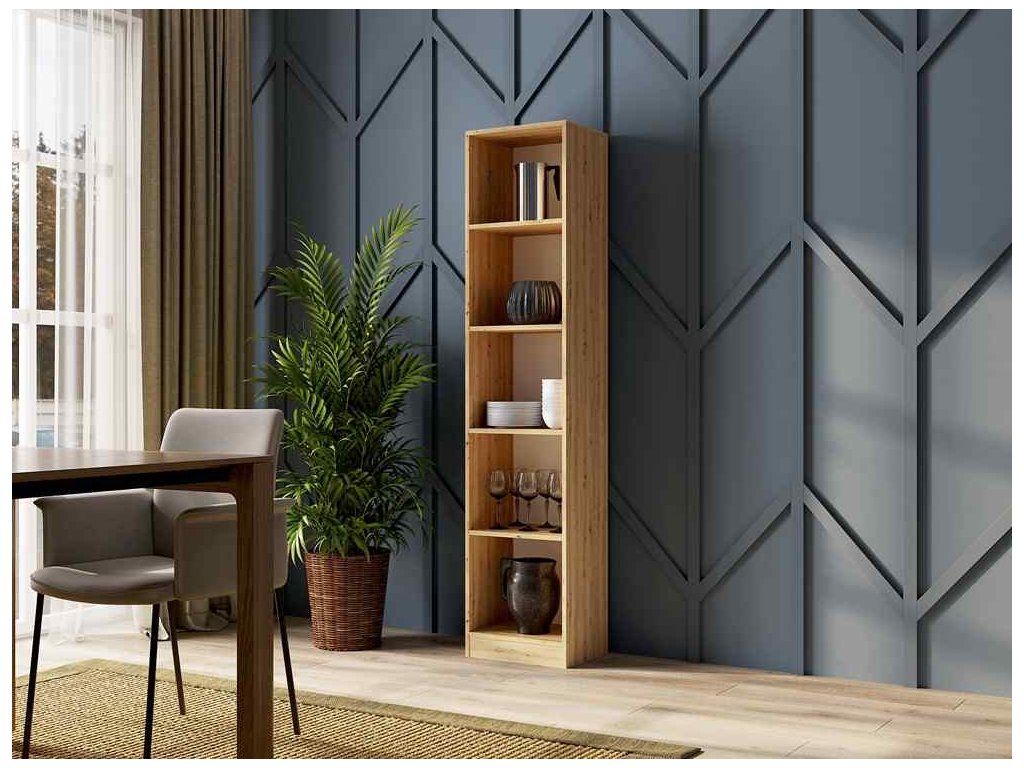 Atraktivní barva dubu Artisan dodává regálu TEMPE teplý a přírodní vzhled, který snadno ladí s různými styly interiéru a dodá vaší místnosti pocit útulnosti a elegance.