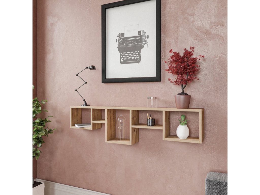 Nástěnná police se vyznačuje úžasnou barvou borovice, která dodá vašemu okolí teplo a kouzlo. Přírodní dřevěná povrchová úprava doplní jakýkoli styl interiéru, ať už je moderní, minimalistický nebo rustikální.
