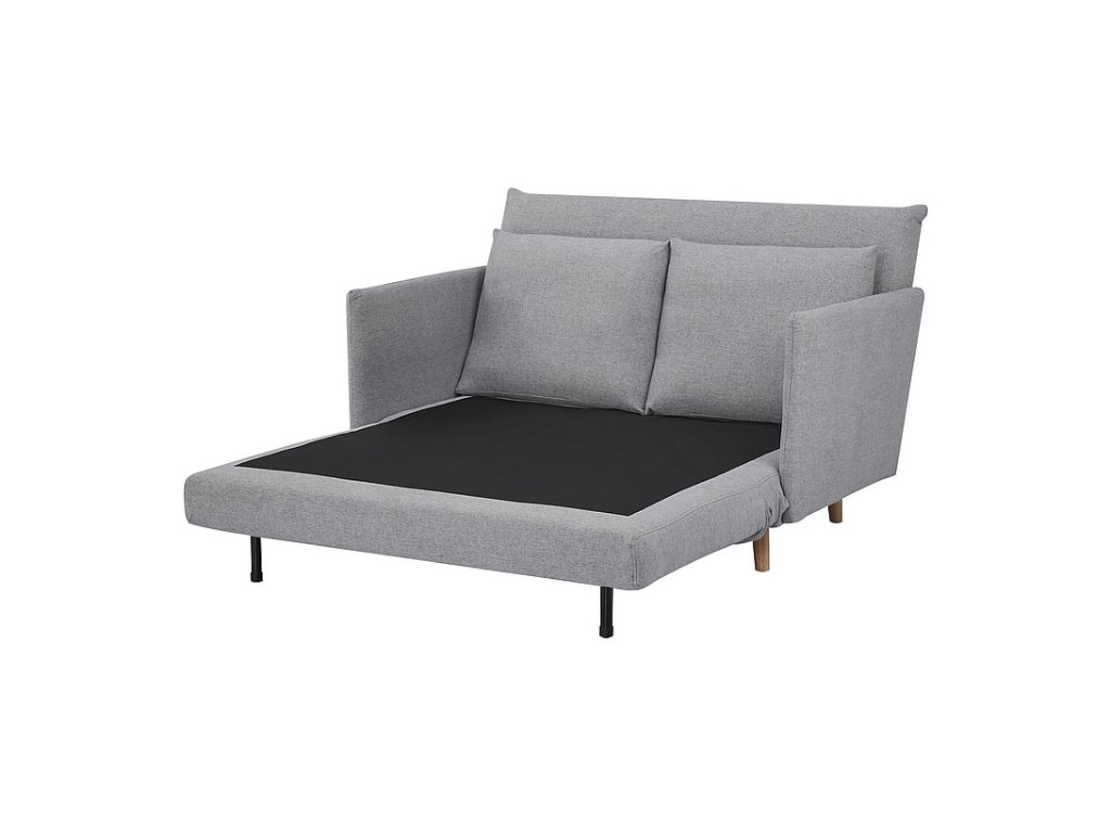 Pohovka je rozkládací, vhodná pro příložitostné spaní a relaxování. Je čalouněna kvalitní látkou tap. 137, ve světle šedém barevném provedení. Nohy jsou vyrobeny ze dřeva, v barvě buk.