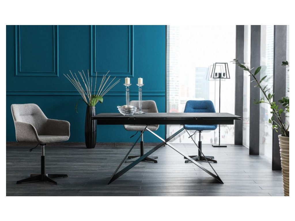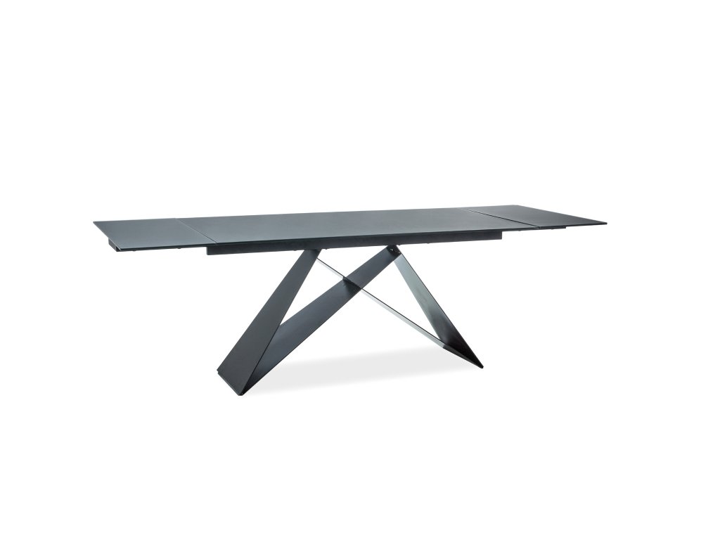 Moderní designový velký jídelní stůl. Stůl je vhodný do interiérů zařízených ve stylu loft. Konstrukce stolu je kovová černá v matné barvě, vrchní deska je vyrobena z tvrzeného černého skla. Stůl je dostupný také v provedení černý kámen. Stůl je vhodný až pro 8 osob. Rozměry (výška/šířka/hloubka v cm): 76/160-240/90. Záruka 24 měsíců. Dodáváme v demontovaném stavu.Doplňkové parametry