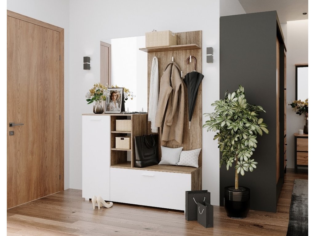 Předsíňová sestava WENTLY je ideální volbou pro ty, kteří hledají stylové a praktické řešení pro svou předsíň. Udrží váš vstupní prostor uklizený a organizovaný.