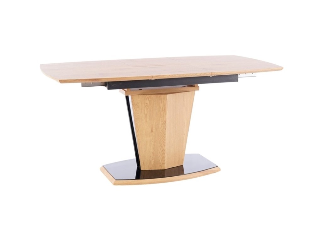 Je vyroben vz kvalitního MDF, přírodní dýhy a tvrzeného skla. Barevné provedení: dub, černý lesk.