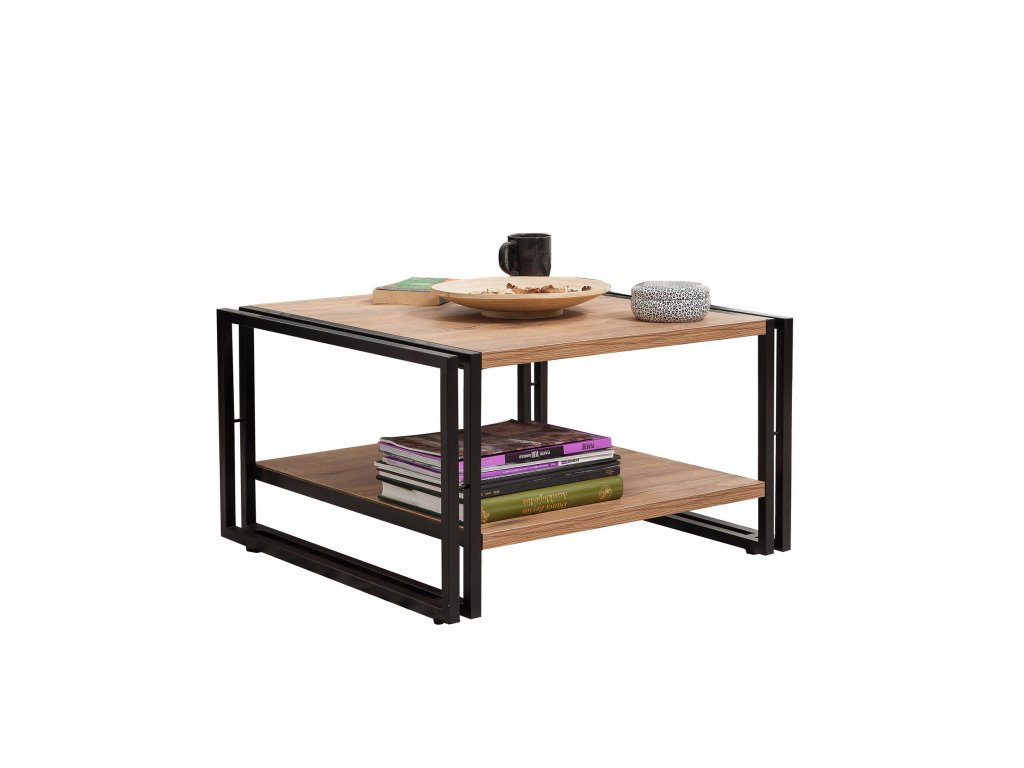 Kombinace borovicového dekoru a černých kovových prvků dodává stolku moderní industriální vzhled, který skvěle doplní interiér vašeho obývacího pokoje. Dodává se v demontovaném stavu s přiloženým návodem na snadné sestavení.