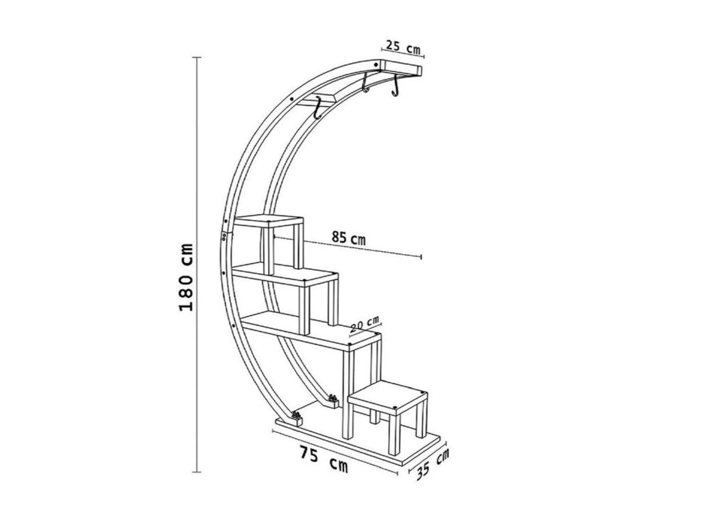 S šířkou 85 cm, výškou 180 cm a hloubkou 35 cm nabízí tato knihovna dostatek prostoru pro všechny vaše knihy, dekorace a další. Zakřivený kovový design nejen dodává knihovně jedinečný nádech, ale slouží také jako držák na hrnce, který vám umožní vystavit vaše oblíbené rostliny nebo kuchyňské nezbytnosti.