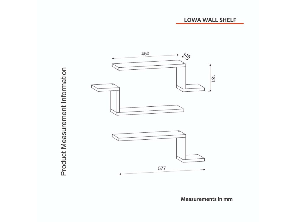 - Sestava obsahuje: 3x nástěnná police š58 x v18 x h14.5 cm