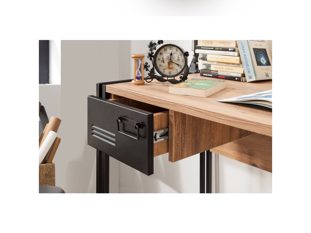 Psací stůl YAEH nabízí ideální kombinaci moderního industriálního stylu a funkčnosti. S elegantním dekorem borovice a černými kovovými detaily se skvěle hodí do dětského pokoje, kanceláře i pracovny.