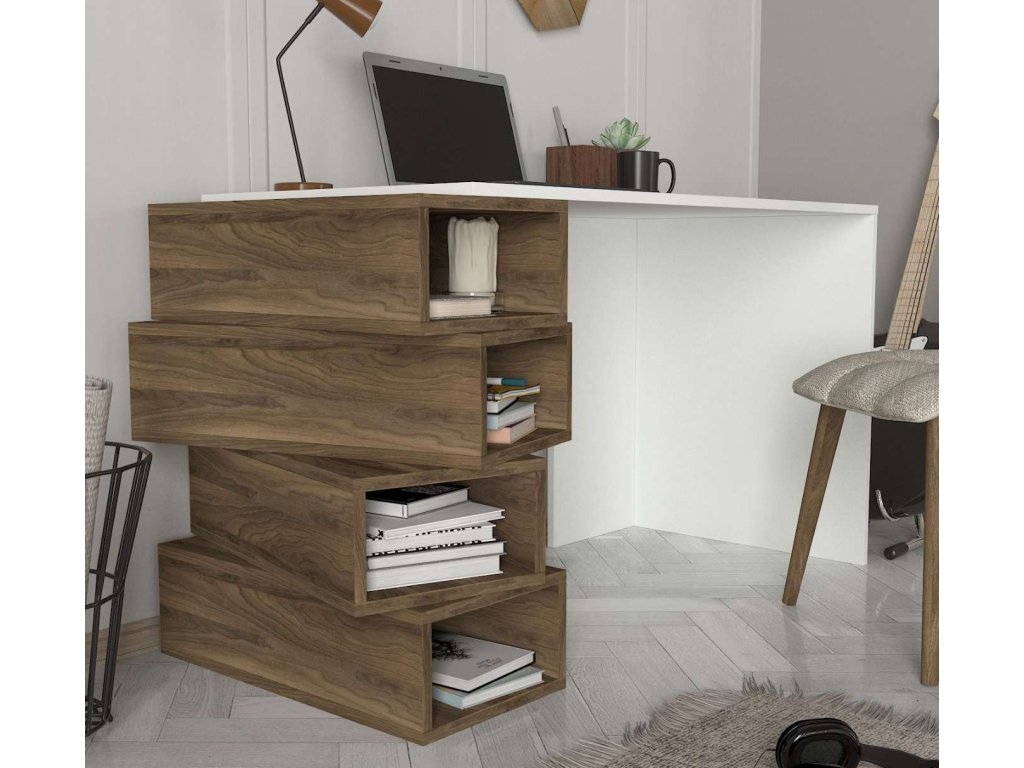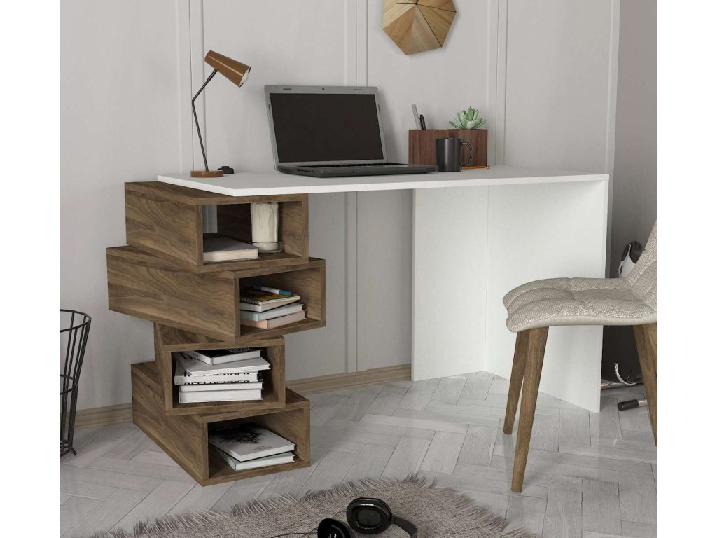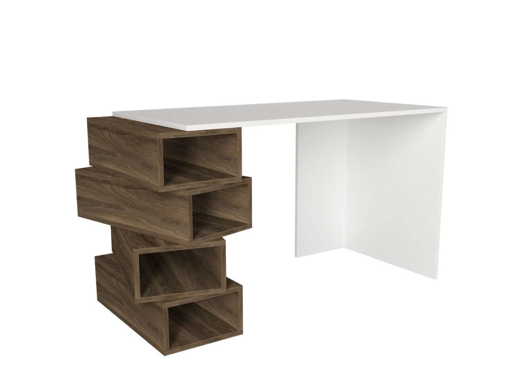 Písací stůl YENGA je vyroben z kvalitního LTD materiálu s tloušťkou 18 mm, což zajišťuje jeho pevnost a dlouhou životnost. Elegantní kombinace bílé barvy a ořechového dekoru dodává stolu moderní a stylový vzhled, který se hodí do jakéhokoliv interiéru. Stůl je vybaven praktickým regálkem, který poskytuje dostatek úložného prostoru pro vaše pracovní potřeby a pomůcky.