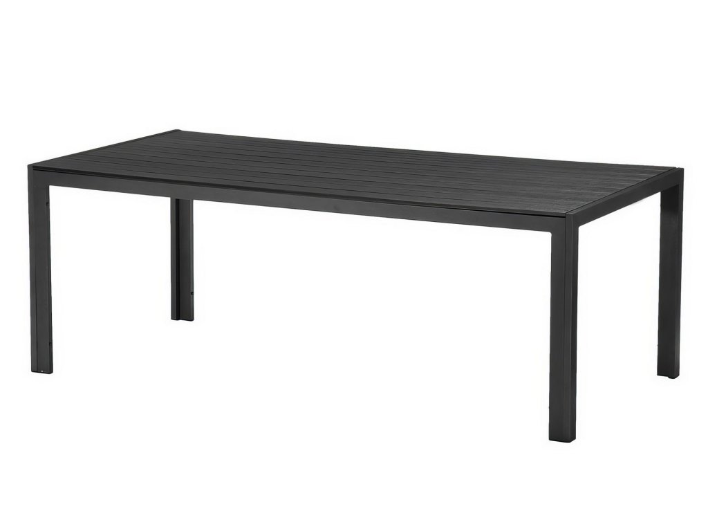Zahradní stůl s odolnou Artwoodovou deskou a hliníkovou konstrukcí. Artwood neboli polywoodová deska je plastové syntetické dřevo a je to materiál vhodný pro venkovní používání. Nohy stolu jsou vybaveny adaptéry pro větší stabilitu. Rozměry stolu jsou ( Š x V x H cm ) - 205 x 74 x 90 cm. Barevné provedení - černá.