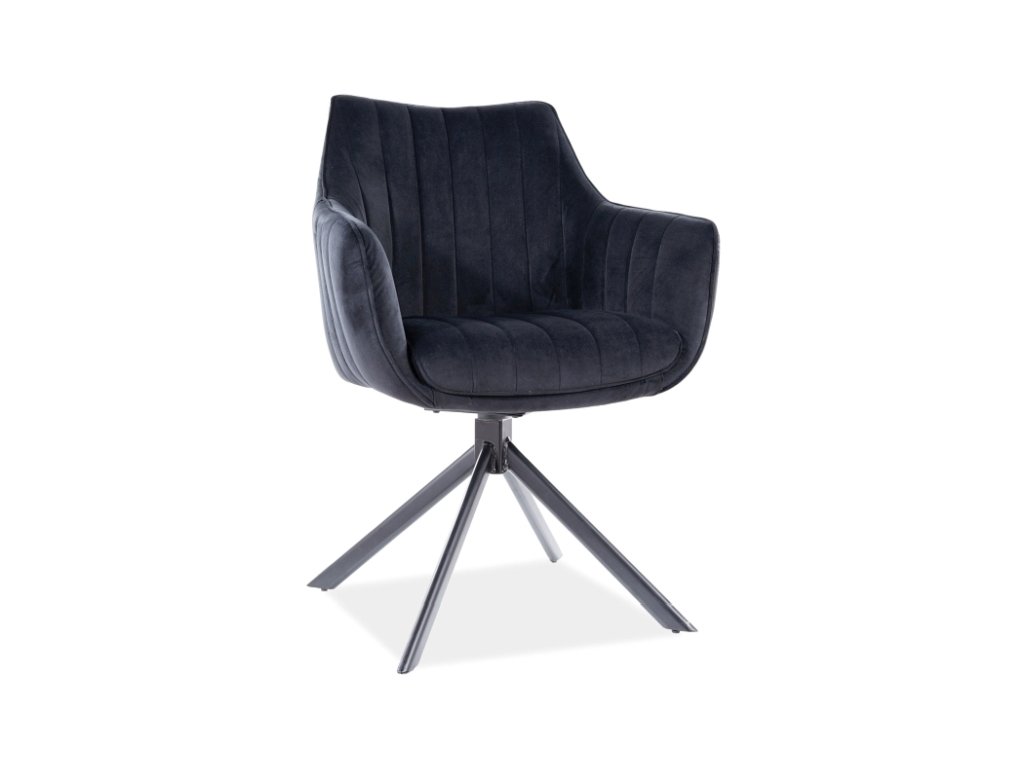 Konstrukce je stabilní z kovu, lakovaná černou matnou barvou. Křeslo má jednoznačně výhodu oproti ostatním čalouněným židlím, a tou je schopnost otáčení se až o 180°, což poskytuje spoustu možností. Perfektně se hodí do moderního interiéru u stolu v jídelně nebo v kuchyni, ale může sloužit i jako křeslo u pracovního stolu v kanceláři. V nabídce ve více barevných provedeních.
