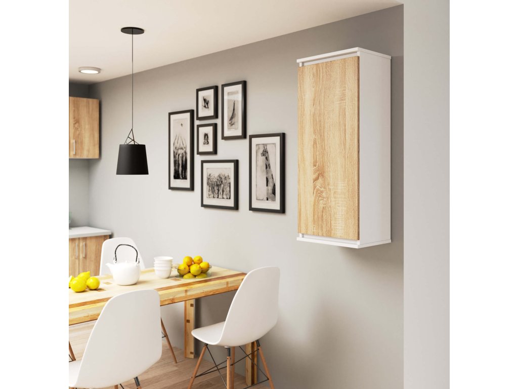 Bílá kombinovaná s teplým odstínem dubu Sonoma zaručuje, že závěsná skříňka CLAINA40 se stane nepřehlédnutelným prvkem vašeho interiéru. Její praktičnost a nadčasový design z ní dělají ideální doplněk do každé moderní domácnosti.