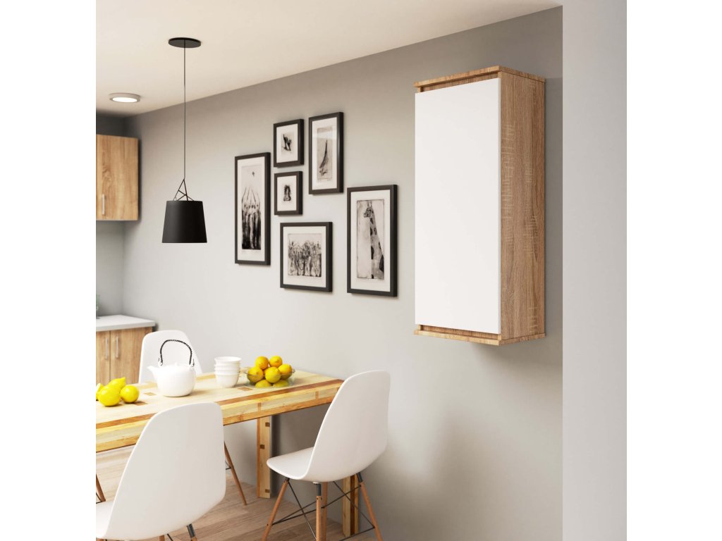 Moderní design v kombinaci dřevěného odstínu dubu Sonoma s čistou bílou zaručuje, že závěsná skříňka CLAINA40 se stane dominantním prvkem vašeho interiéru. Skvěle se hodí jak do tradičních, tak do moderních prostor.