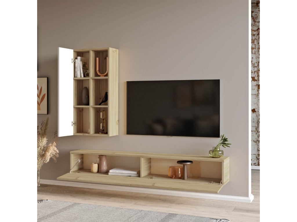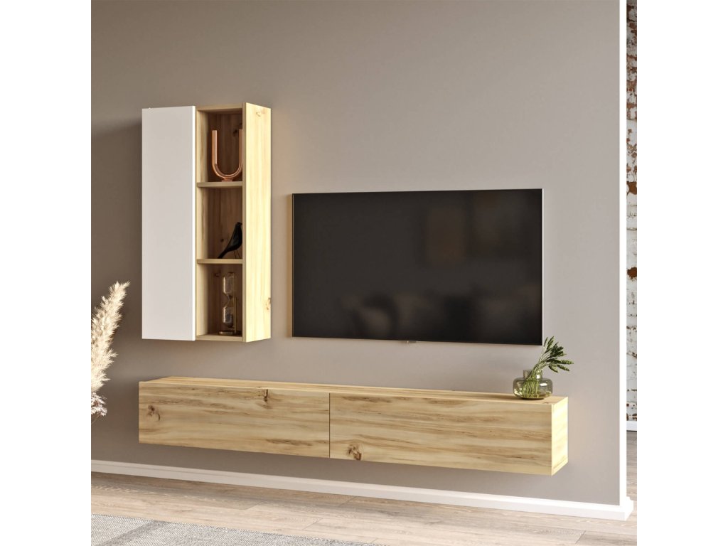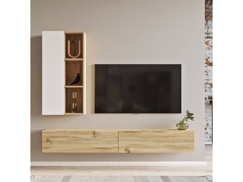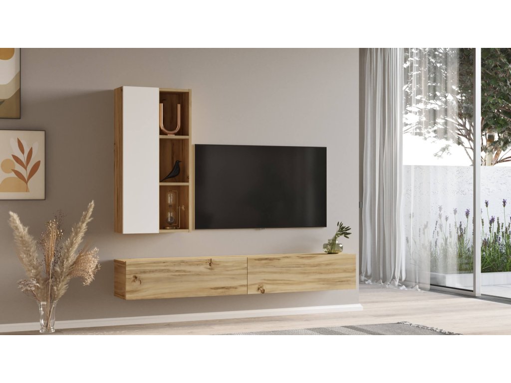 závěsná TV sestava LEVY 10, barva dub Left + bílá