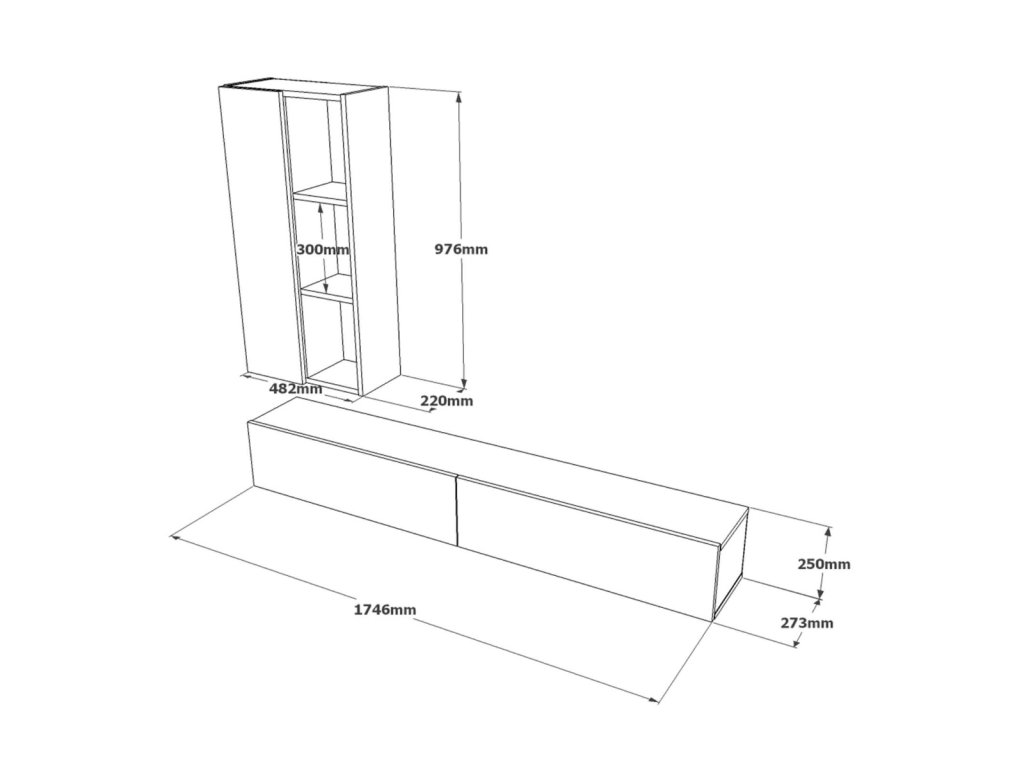 | Sestava obsahuje: | š/v/h - tv stolek - 174,6*25*27,3,regál - 48,2*97,6*22 |