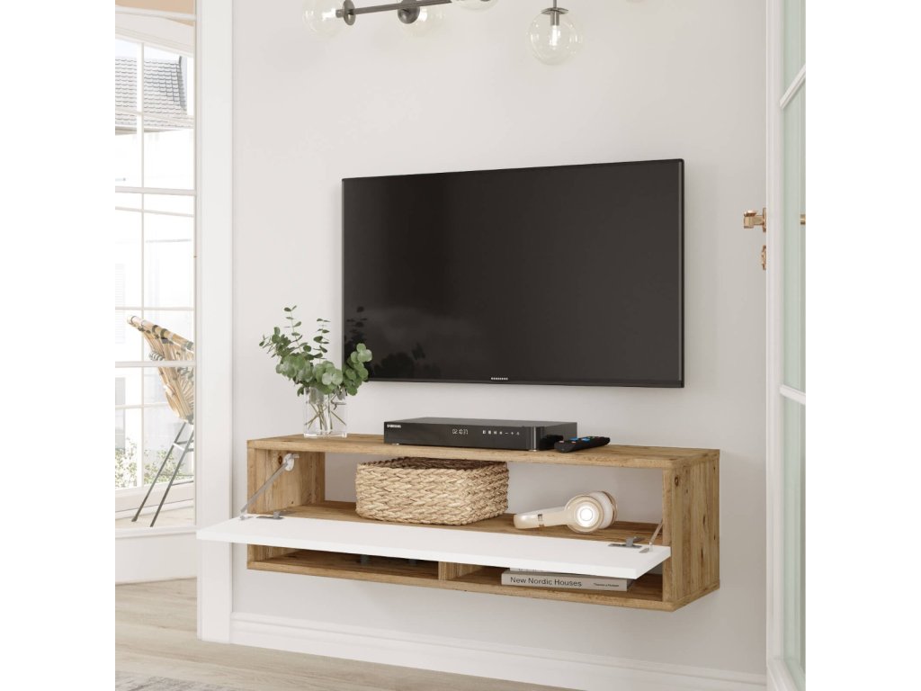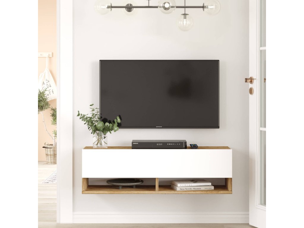 závěsný TV stolek FREY 13, barva borovice + bílá