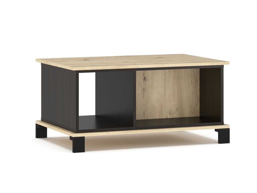 Obývací sektor ZOLNA s atmosférou industriálního stylu tvoří nábytek plný zajímavých detailů. V nabídce je v nadčasovém a stylovém barevném provedení dub artisan s kontrastním orámováním barvy wenge. Součástí sektoru je konferenční stolek ZOLNA. Stolek má zajímavý tvar a dvě otevřené police.
