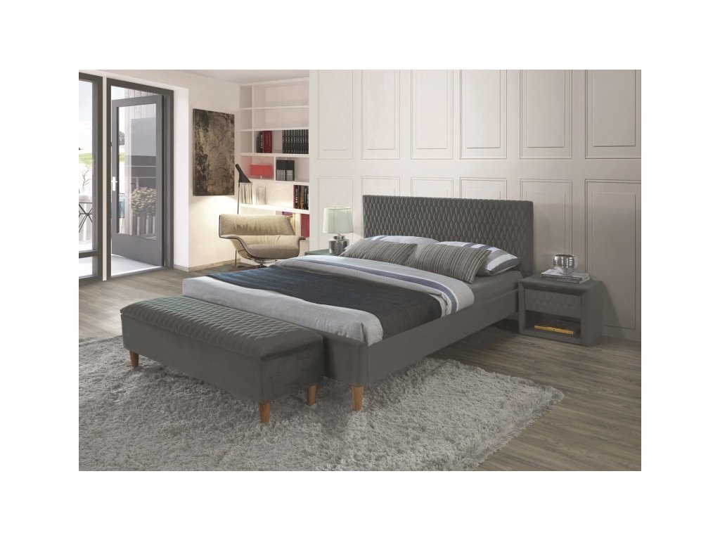 ZORRO čalouněná postel 180 x 200 cm, šedá, dub